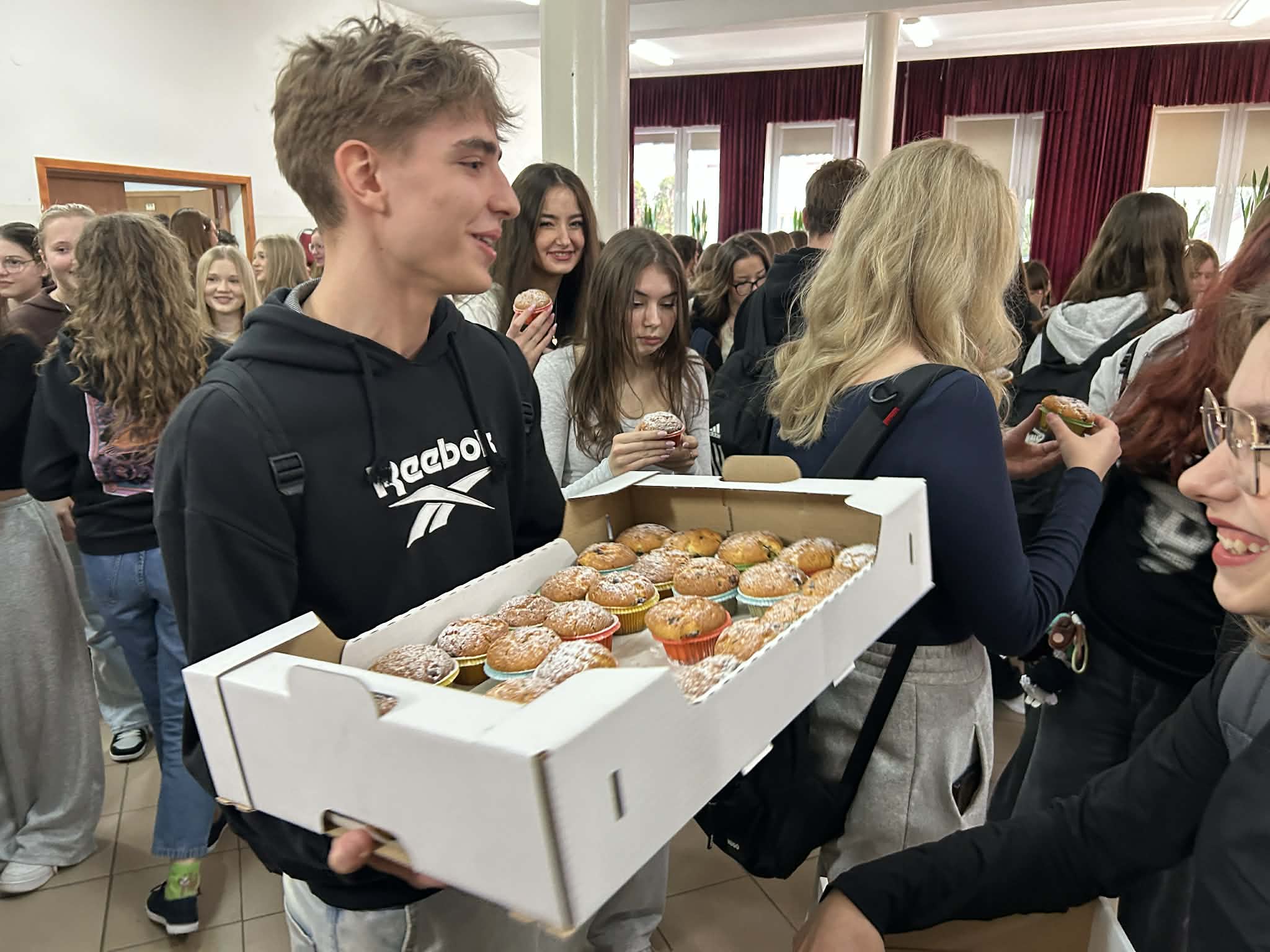 Z okazji Dnia Kobiet Samorząd Uczniowski przygotował słodką niespodziankę dla wszystkich Pań w naszej szkole. Zakupiliśmy w Piekarni Górskich pyszne babeczki, które następnie rozdaliśmy nauczycielkom, pracownicom szkoły oraz uczennicom, aby umilić im ten wyjątkowy dzień. Jeszcze raz składamy wszystkim Paniom najserdeczniejsze życzenia – dużo radości, uśmiechu i spełnienia marzeń!