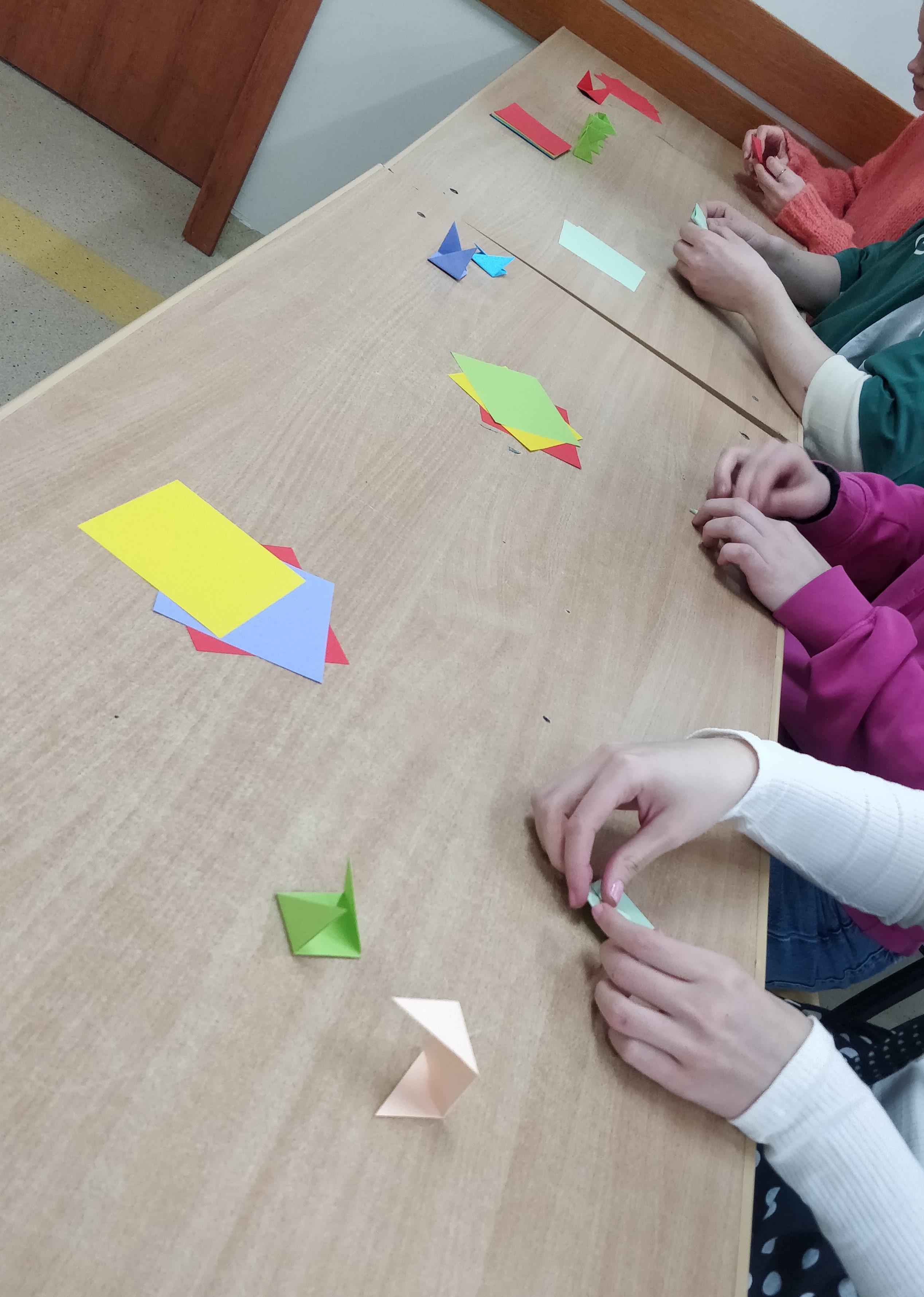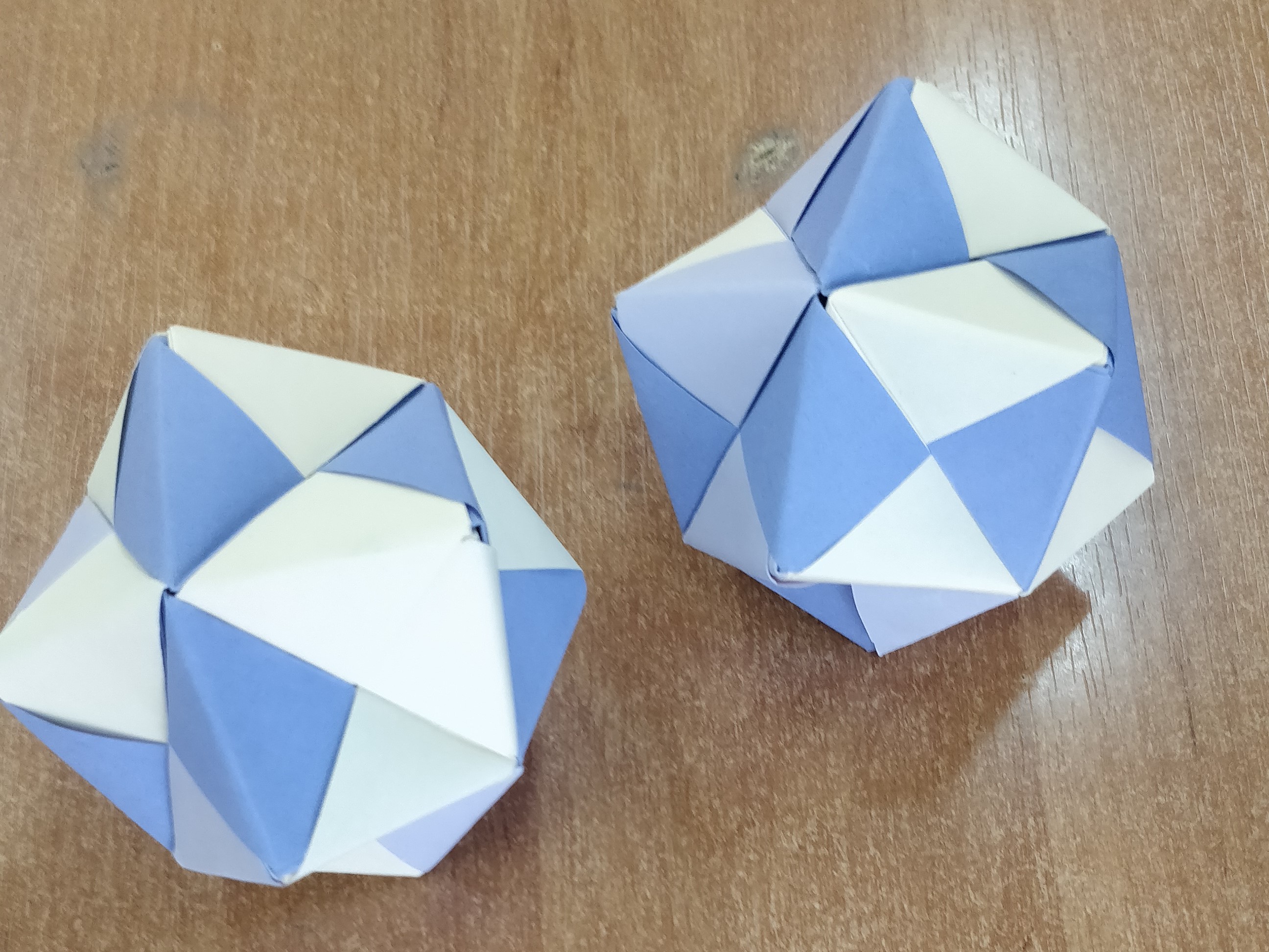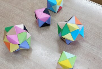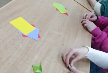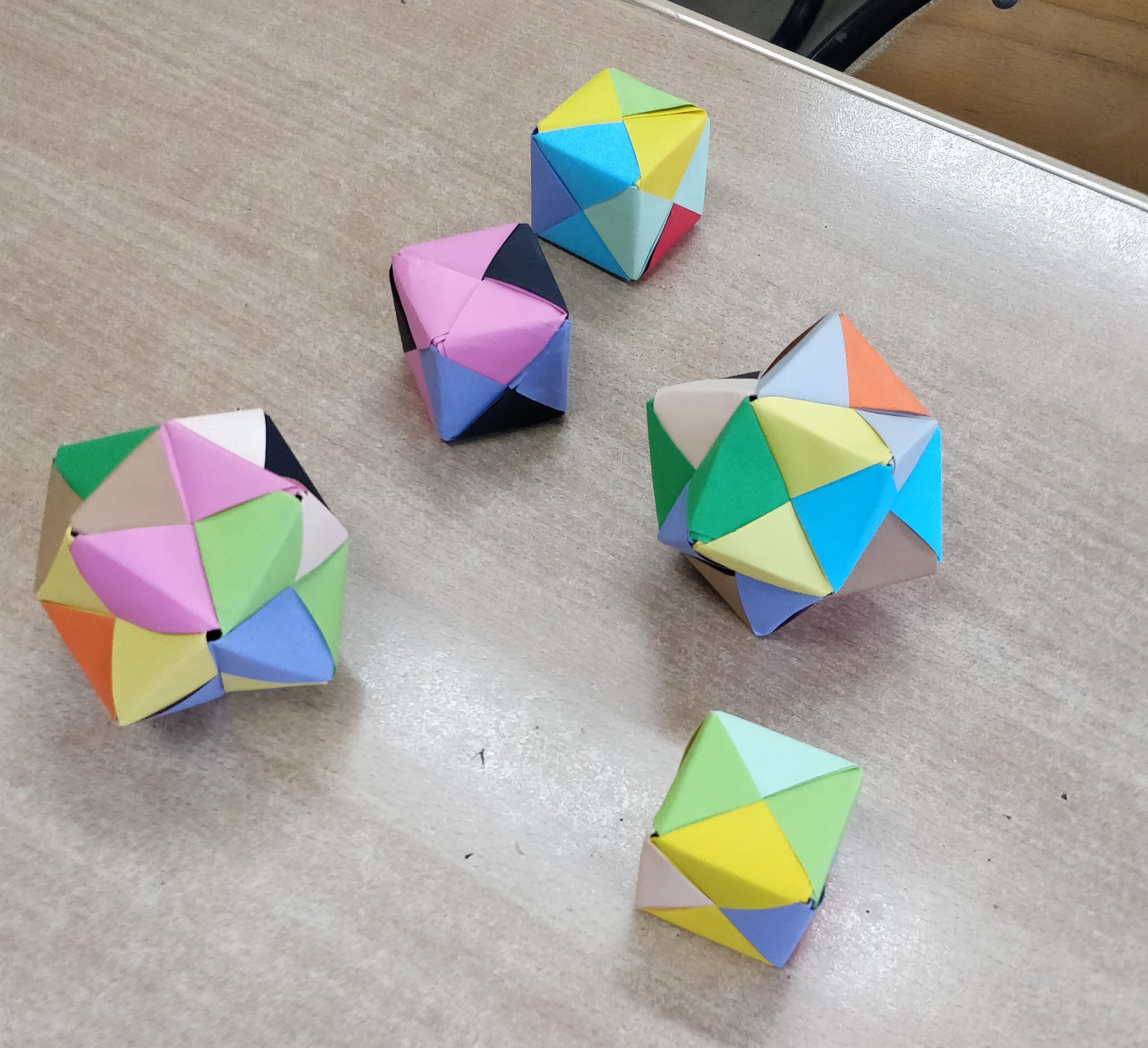 2. Origami matematyczne (kl. 3a, kl. 3c), uczniowie tworzyli wielościany gwieździste.