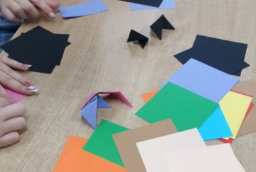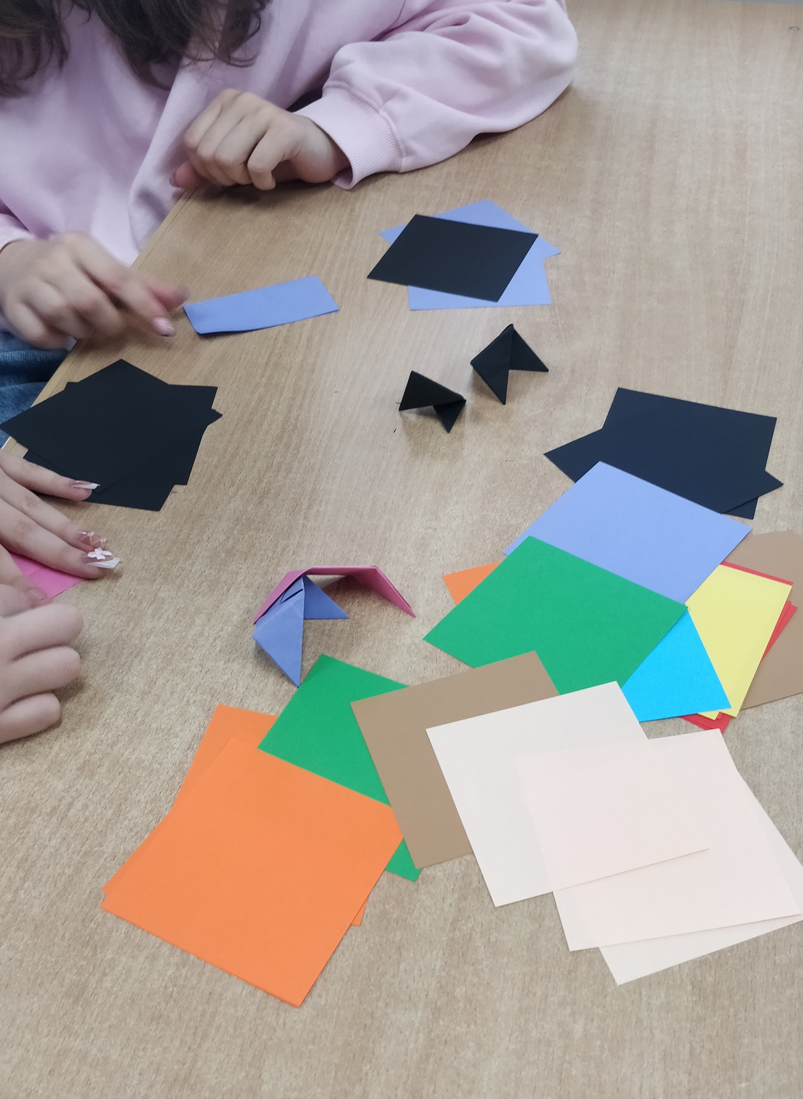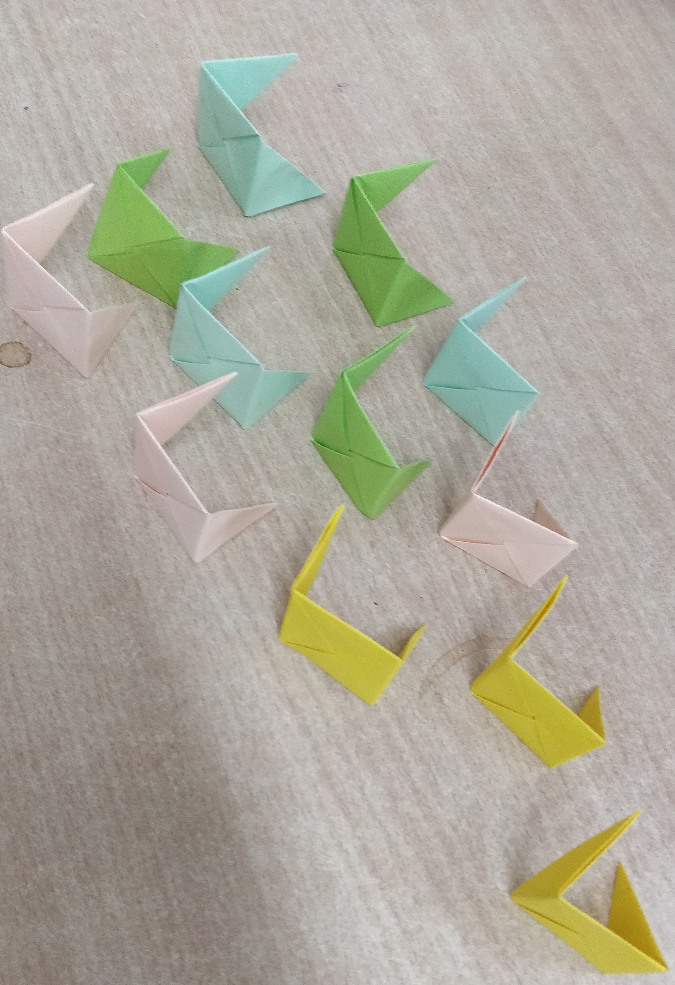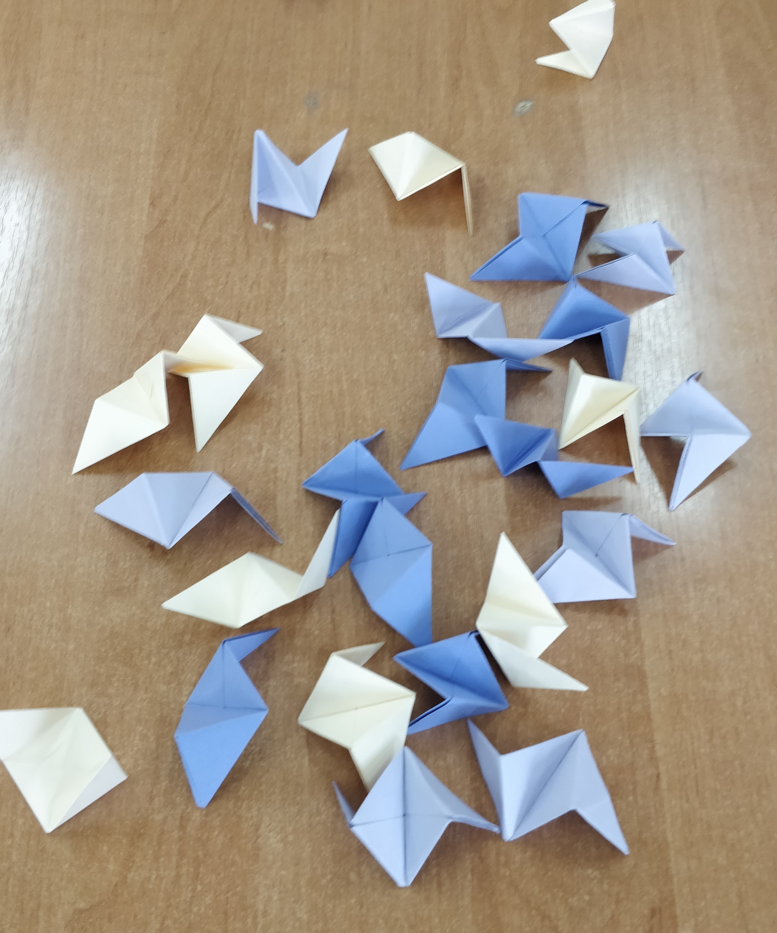 2. Origami matematyczne (kl. 3a, kl. 3c), uczniowie tworzyli wielościany gwieździste.