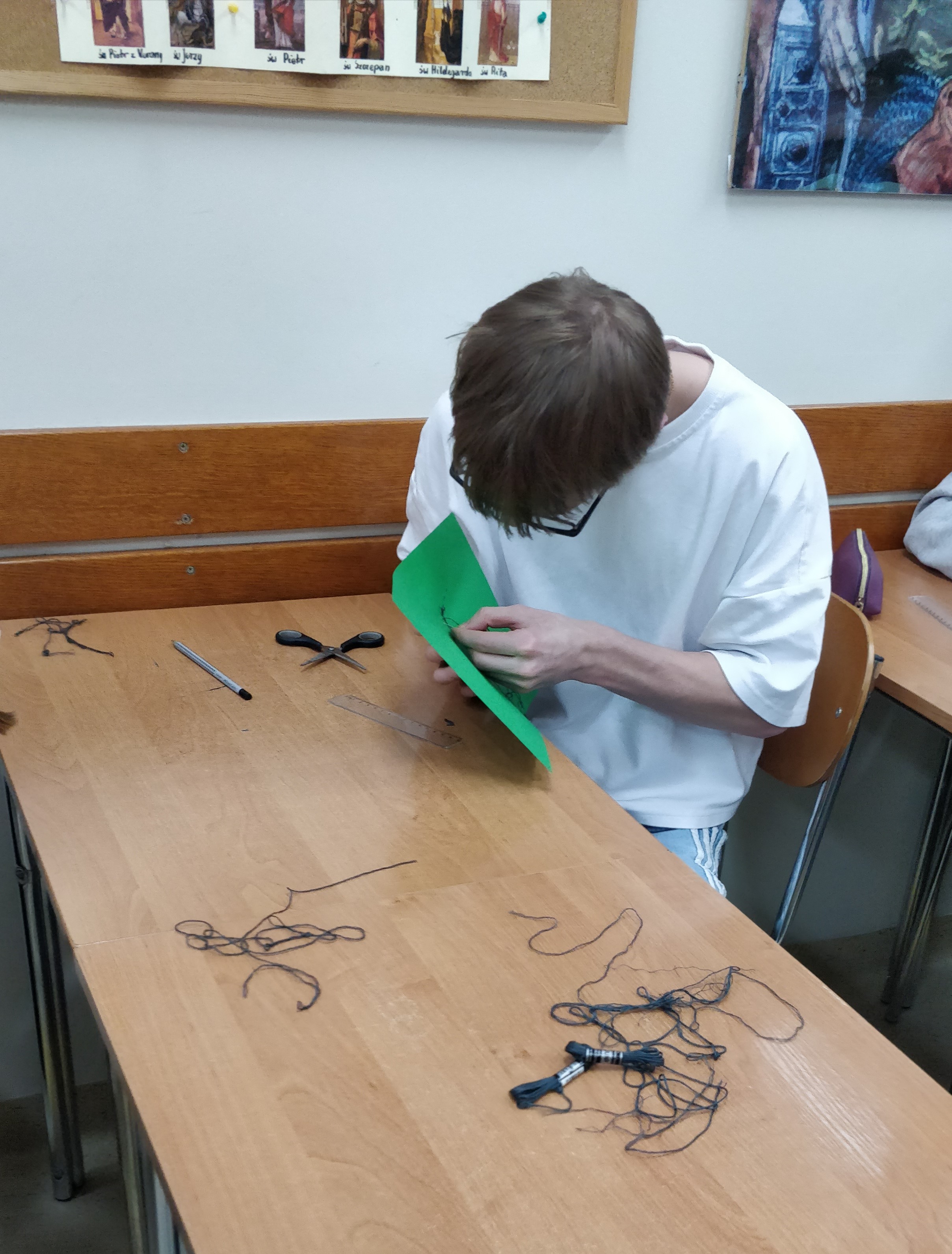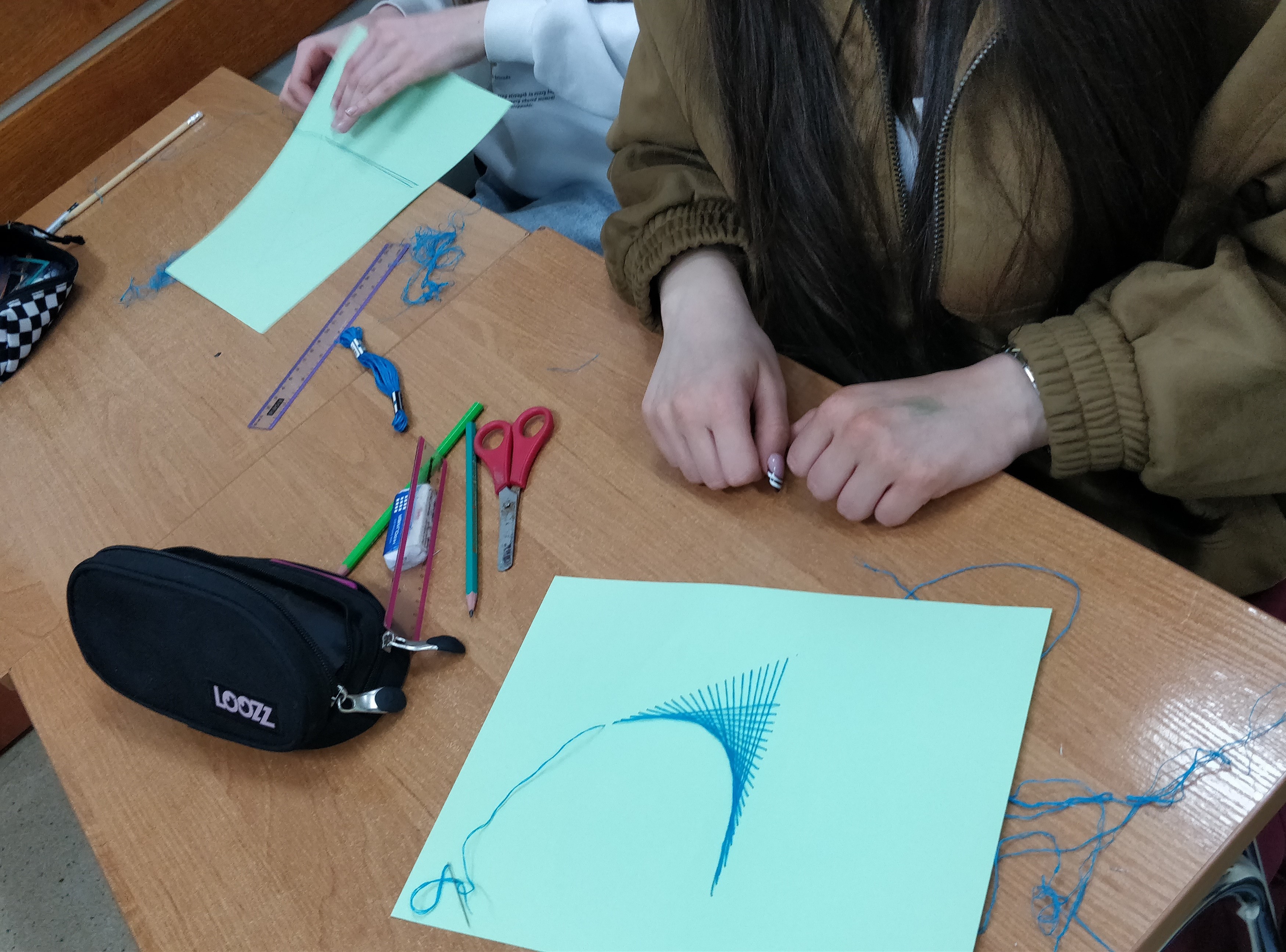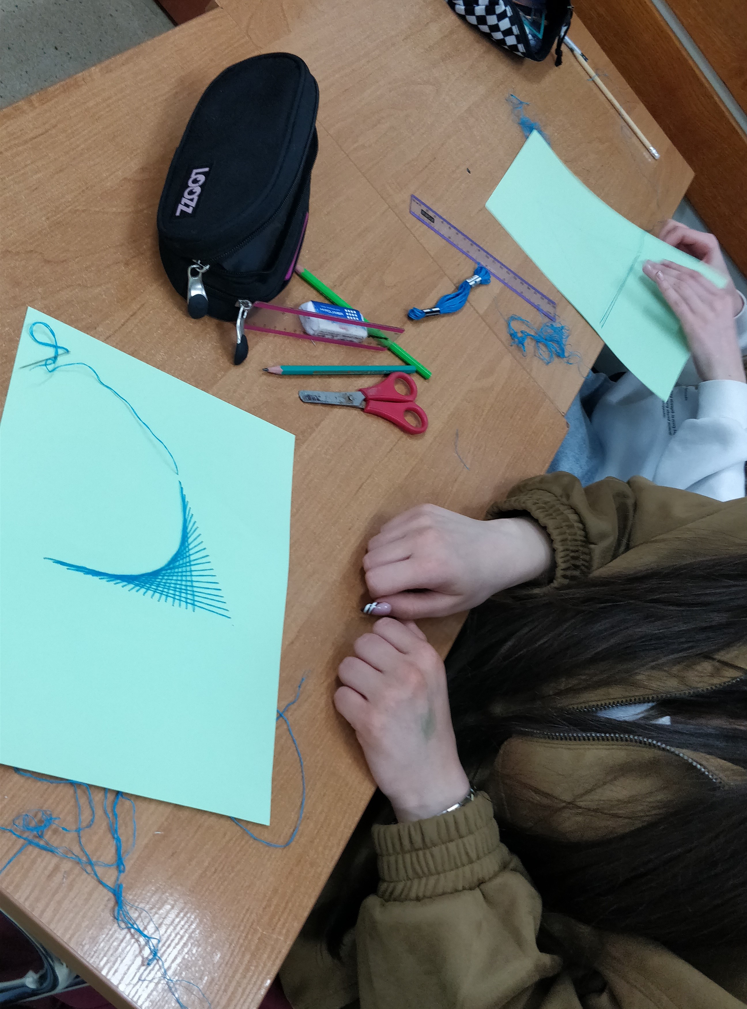 3. Matematyka nicią malowana (kl. 2a), warsztaty pokazały artystyczne spojrzenie na