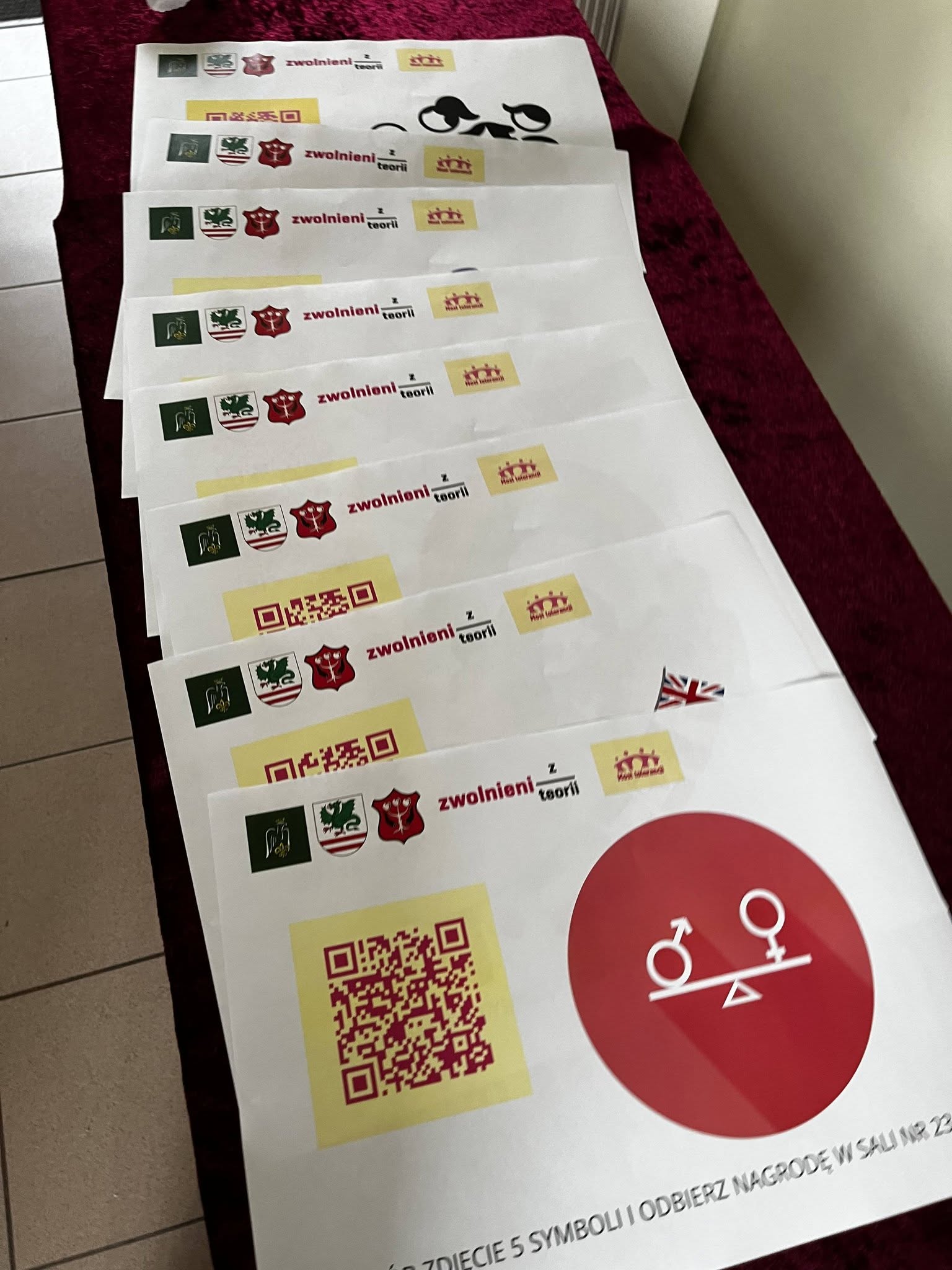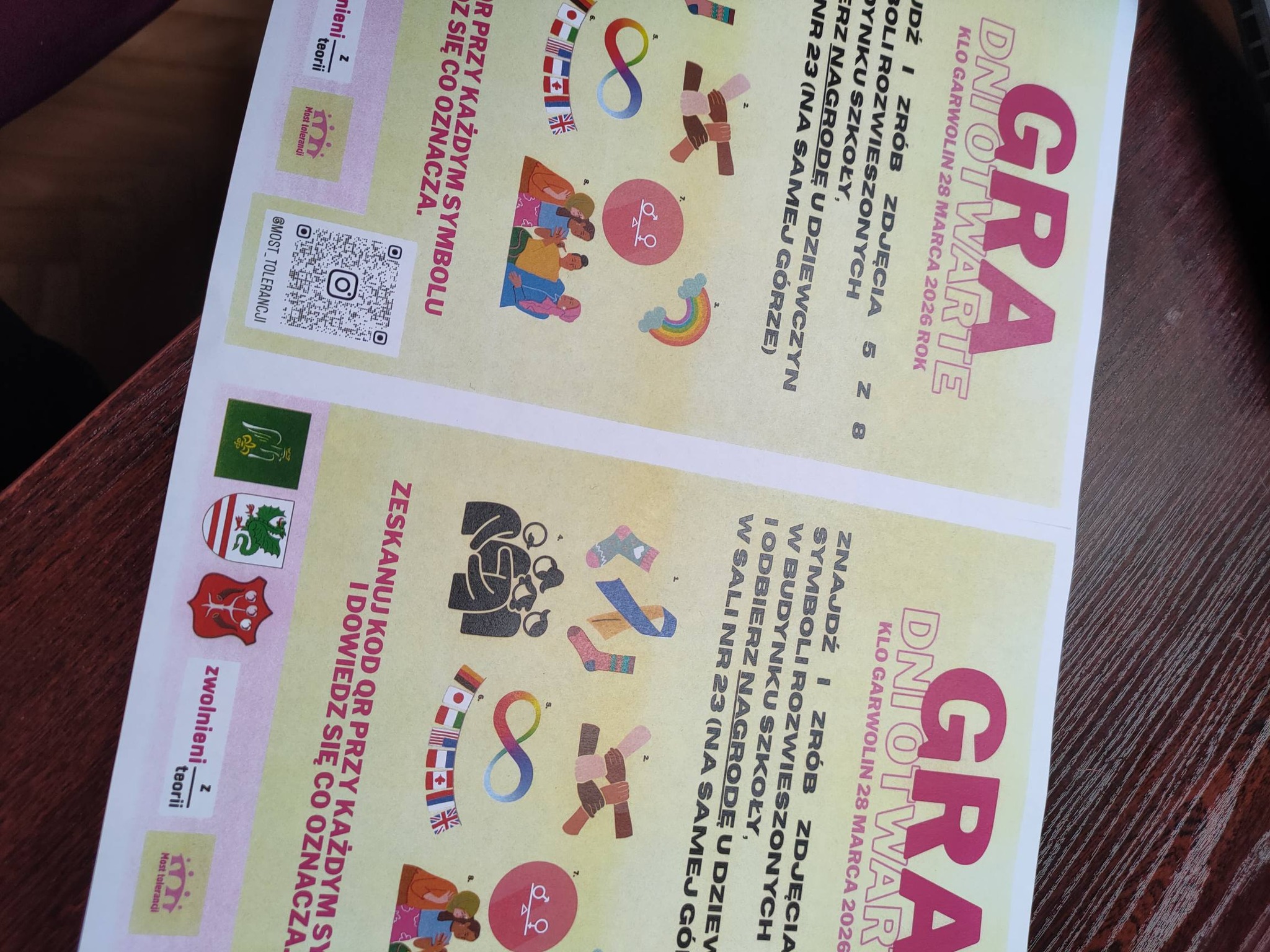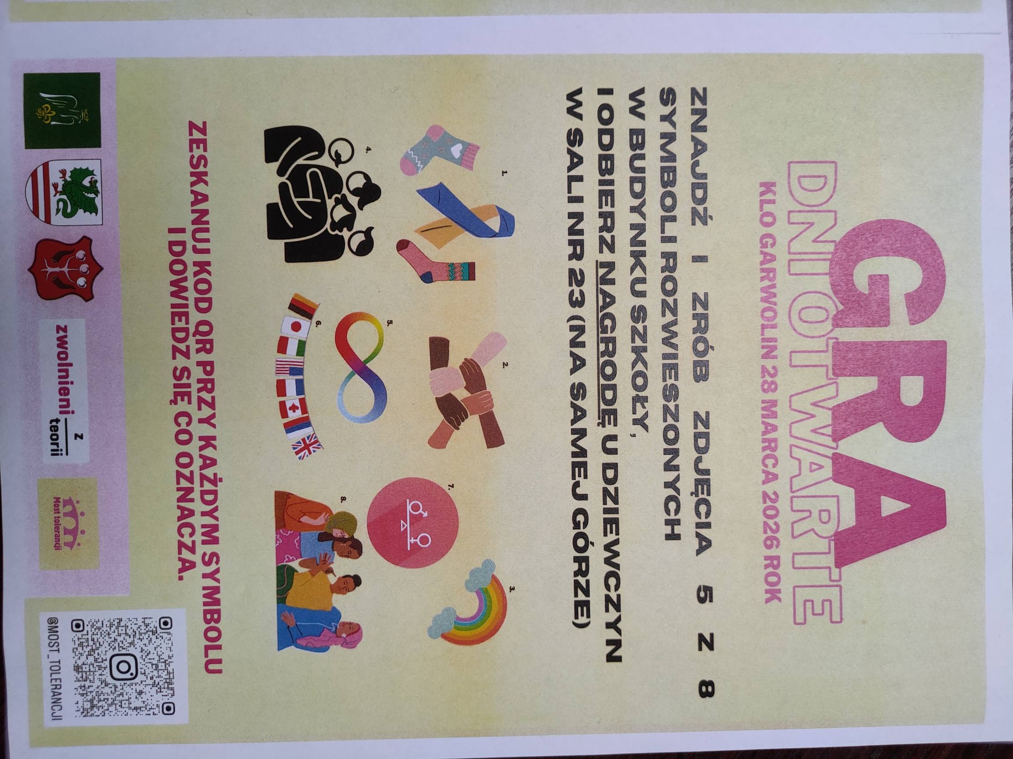 Kandydaci oraz uczniowie KLO, przemieszczając się po terenie szkoły szukali symboli związanych z tolerancją. Trzeba było zeskanować kod i wykonać zadanie. Na końcu, na uczestników wydarzenia czekały nagrody – niespodzianki.