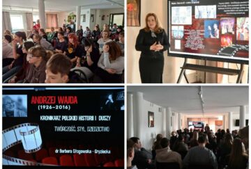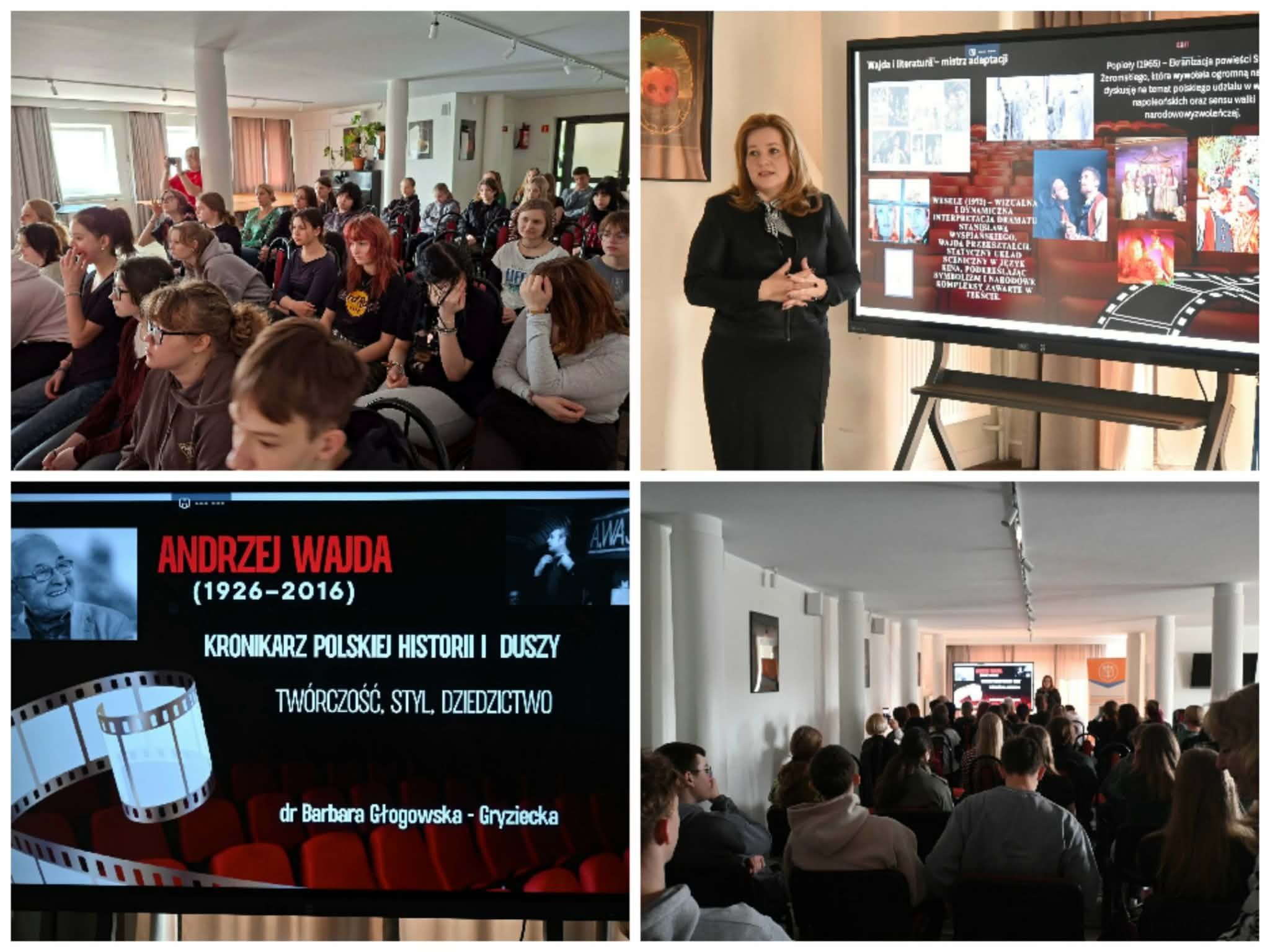 Wykład poprowadziła pani Barbara Głogowska-Gryziecka, która z pasją odkrywała przed młodzieżą tajniki warsztatu jednego z najwybitniejszych polskich reżyserów. Była to doskonała lekcja historii, estetyki i wrażliwości na obraz.